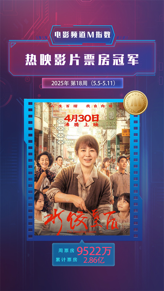 1905电影网讯 “电影频道M指数”2025年第18周结果发布。5月5日-5月11日,“电影频道M指数”热映影片票房榜前6位依次为: