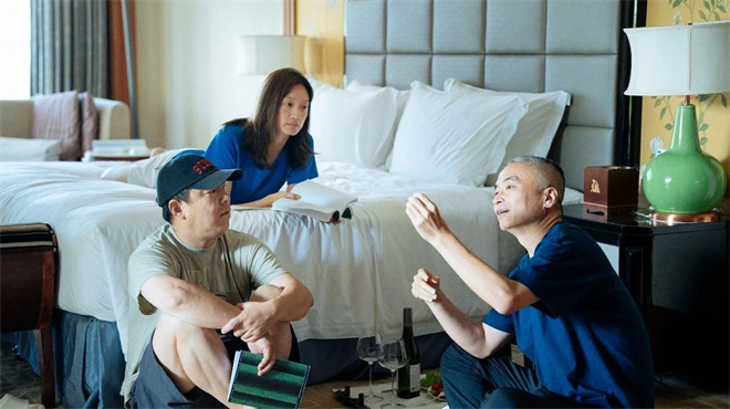 1905电影网讯 近日,由黄渤监制及主演、蔡成杰导演的电影《四分之四》发布首张剧照及幕后照。幕后照中,导演蔡成杰与两位主演黄渤、沈佳妮现身拍摄现场。